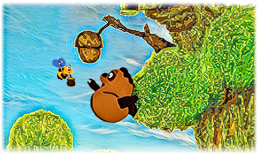 Winny de Puh dice a una abeja: - ¿A dónde llevas la miel? - Куда ты несёшь (действие ориентировано не в сторону говорящего) мёд?